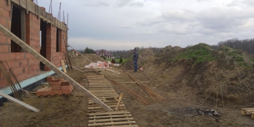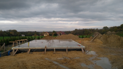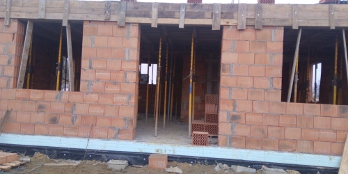 Pierwsze mury pną sie do góry, nadproża gotowe i wieniec nad parterem