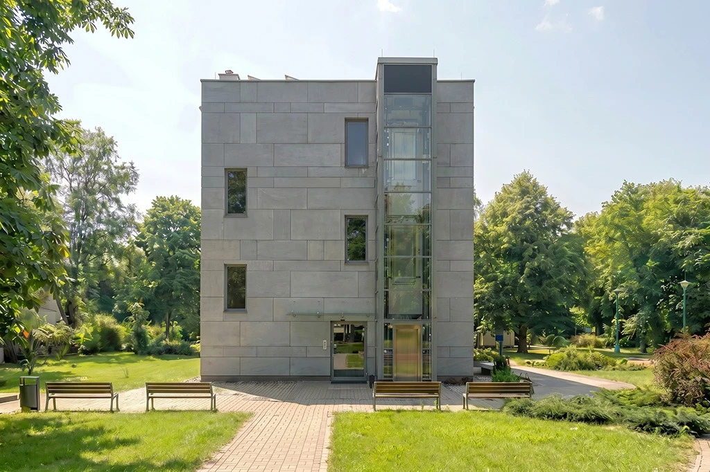 Powierzchnia użytkowa: 492,26 m2. Obiekt trzykondygnacyjny, niepodpiwniczony, zaprojektowany w technologii tradycyjnej murowanej. Przekryty stropodachem o spadku 3%. W budynku przewiduje się maksymalnie 50 osób jako stałych użytkowników obiektu. Budynek wyposażony w windę osobową dostosowaną dla osób niepełnosprawnych.