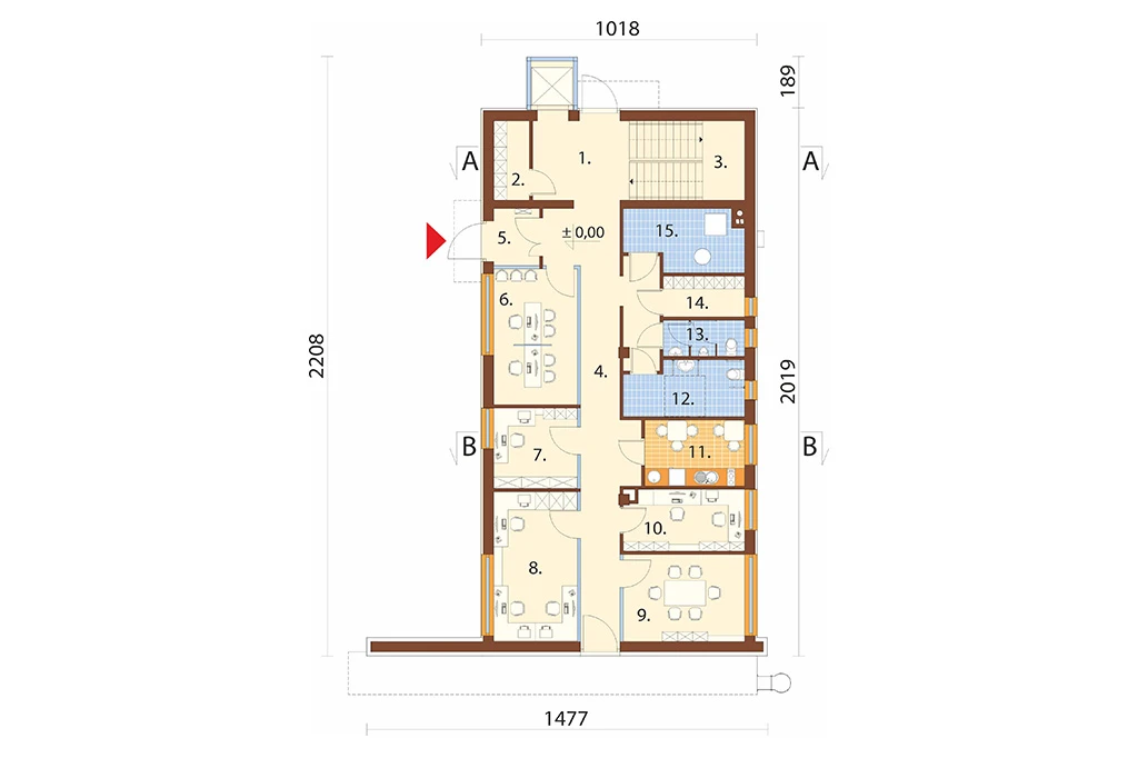 Projekt budynku biurowego LK-179 - przekrój B-B