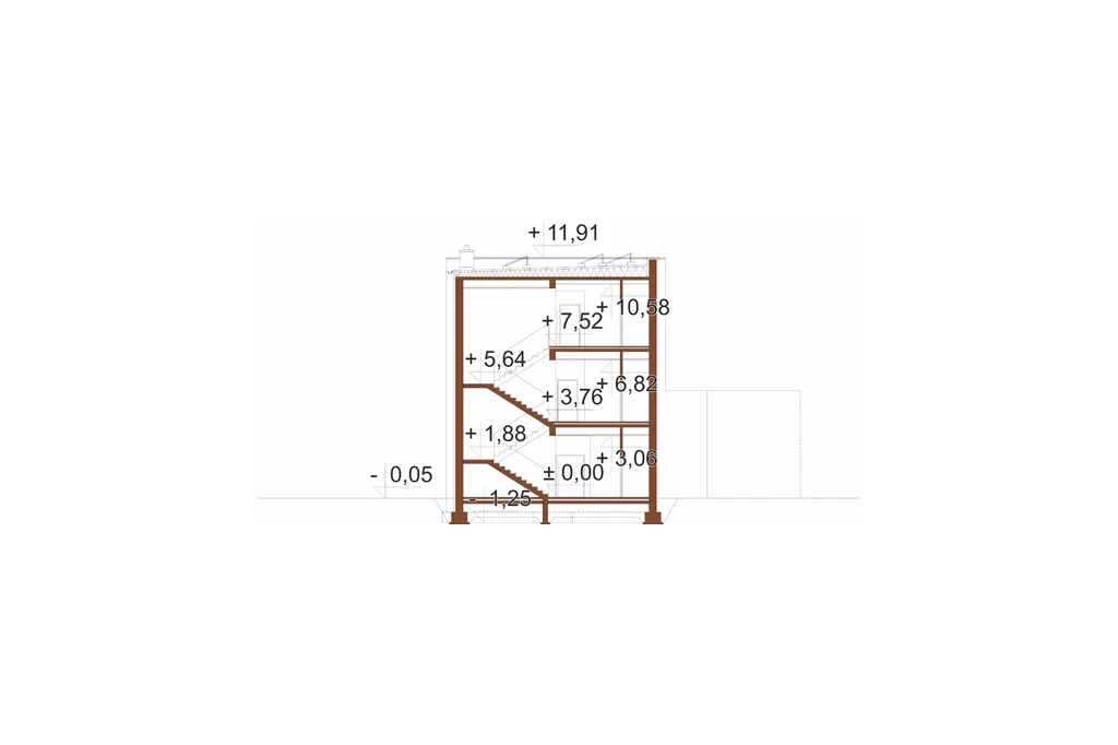 Projekt budynku biurowego LK-179 - przekrój A-A