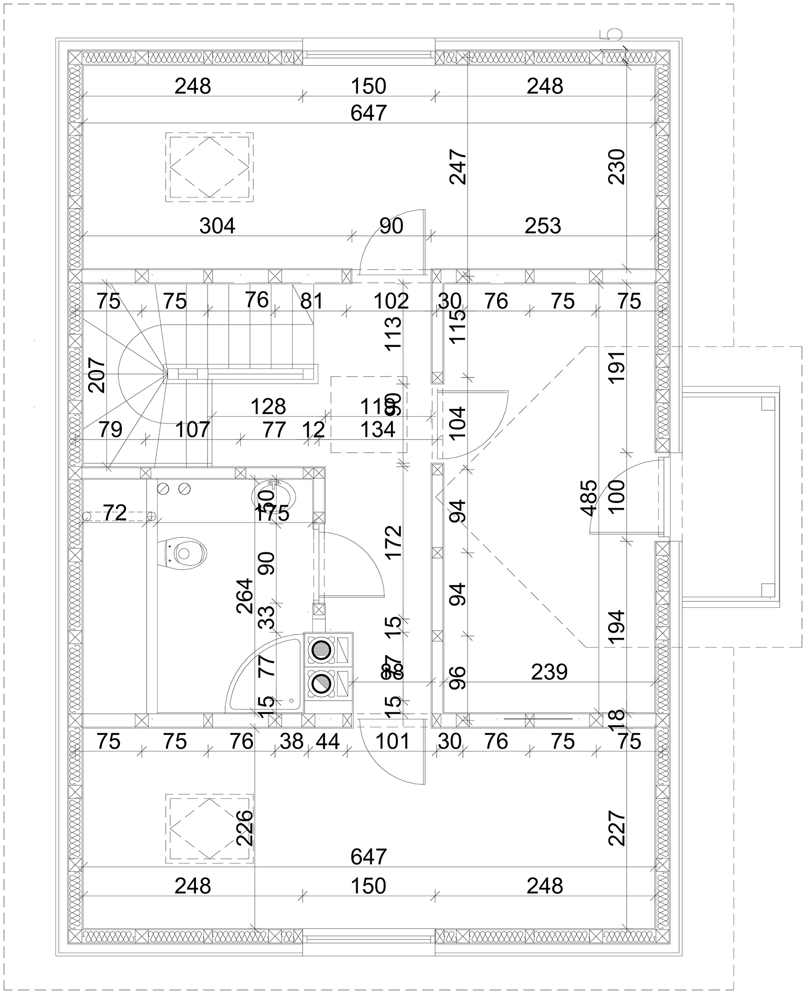 Niniejszy projekt jest wersją POKAZOWĄ autorstwa Biura Architektonicznego KB Projekt. Jako autorzy opracowania i projektu, zgodnie z ustawą o prawie autorskim i prawach pokrewnych z dnia 04.02.1994 (Dziennik Ustaw nr 24 poz. 83 z dnia 23.02.1994 z późniejszymi zmianami), zastrzegamy prawa autorskie i zakazujemy wykorzystywania tego projektu do celów handlowych i dalszej odsprzedaży, reprodukowania, kopiowania w całości i częściowo.