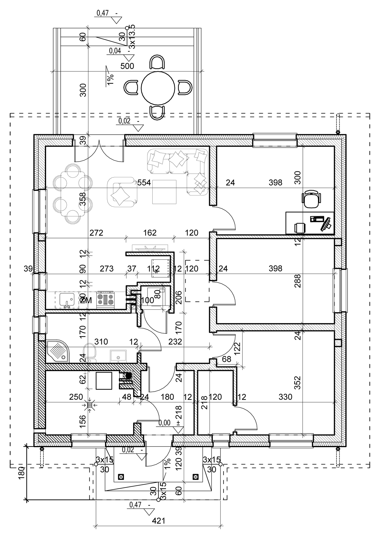 Niniejszy projekt jest wersją POKAZOWĄ autorstwa Biura Architektonicznego KB Projekt. Jako autorzy opracowania i projektu, zgodnie z ustawą o prawie autorskim i prawach pokrewnych z dnia 04.02.1994 (Dziennik Ustaw nr 24 poz. 83 z dnia 23.02.1994 z późniejszymi zmianami), zastrzegamy prawa autorskie i zakazujemy wykorzystywania tego projektu do celów handlowych i dalszej odsprzedaży, reprodukowania, kopiowania w całości i częściowo.